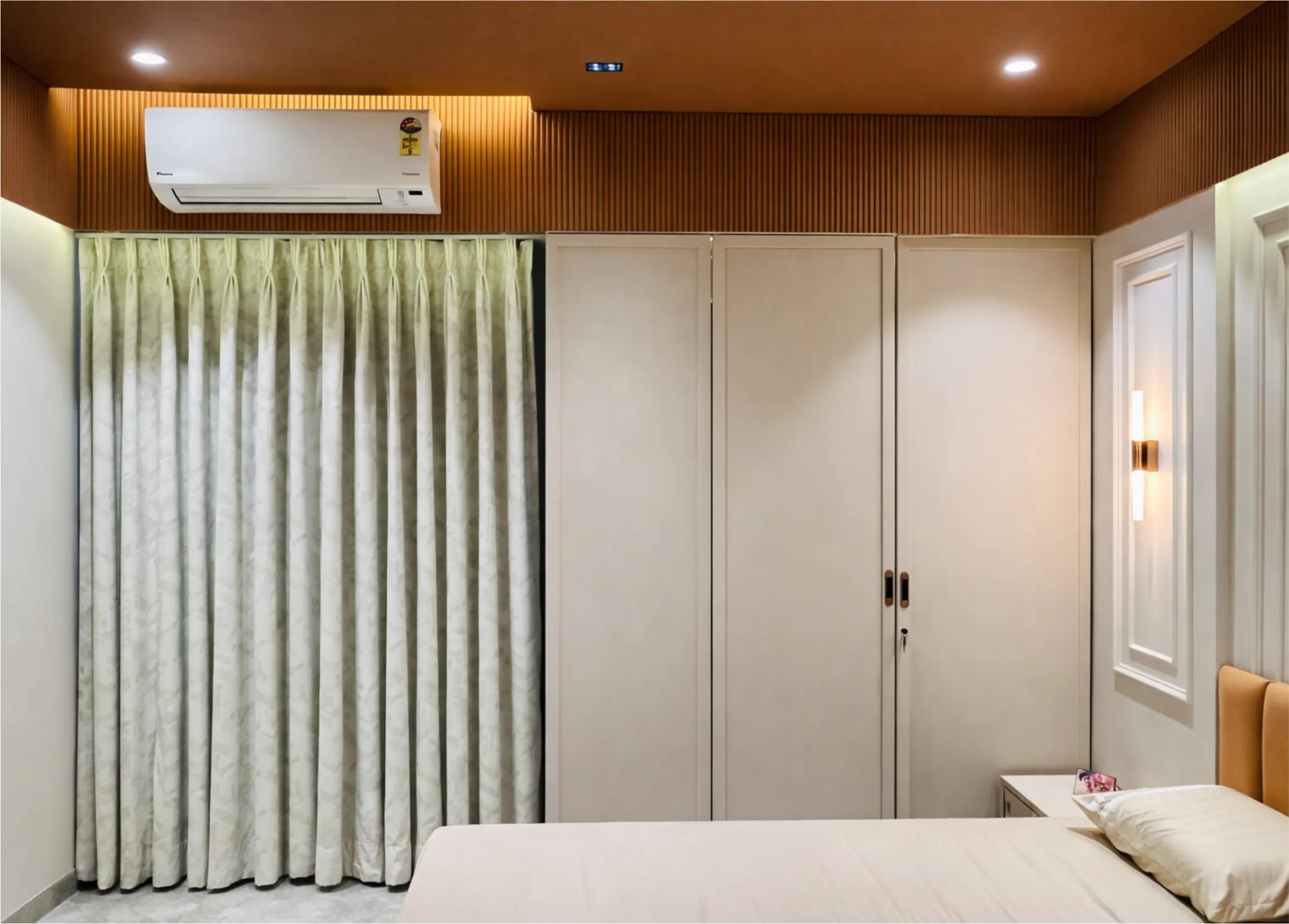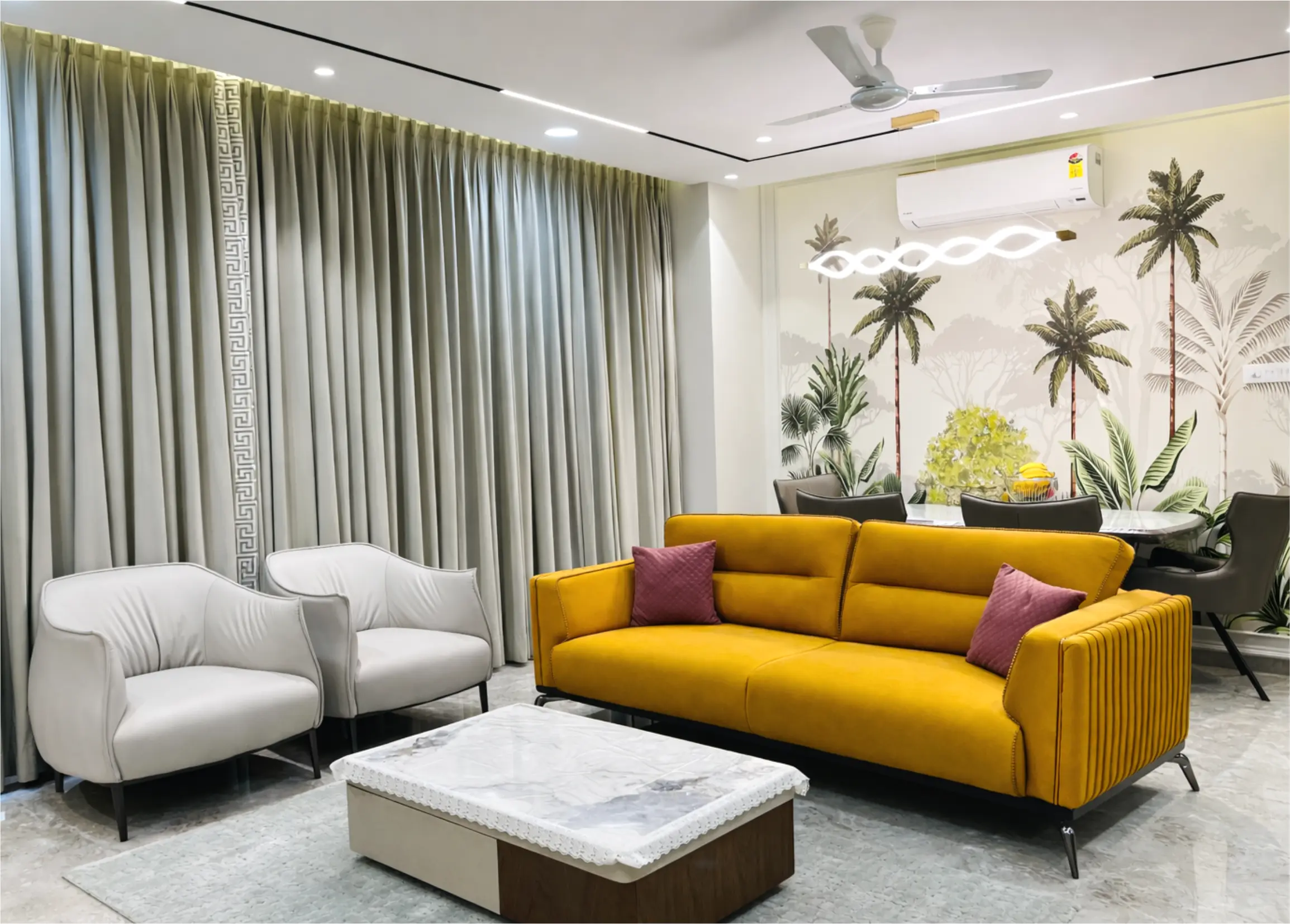 This modern contemporary 3BHK flat is designed with an emphasis on clean lines, smart planning, and understated elegance—an approach synonymous with modern interior design in Pune. A cohesive material palette, sleek finishes, and carefully selected furniture create a refined yet comfortable living experience. Every space is thoughtfully planned to balance aesthetics and functionality, making it a timeless example of premium residential interior design in Pune, supported by precise 3D interior design services in Pune.